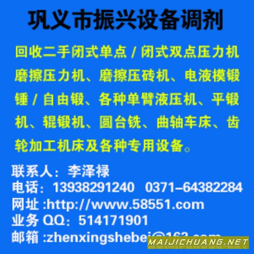 联系电话:0371-23857951 传真:0371-23857951 Email:maishebei@163.com