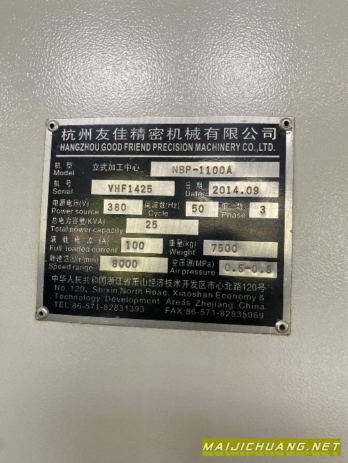 :在位出售友佳 立式加工中心 NBP-1100A行程1100x600x600法拉克系统