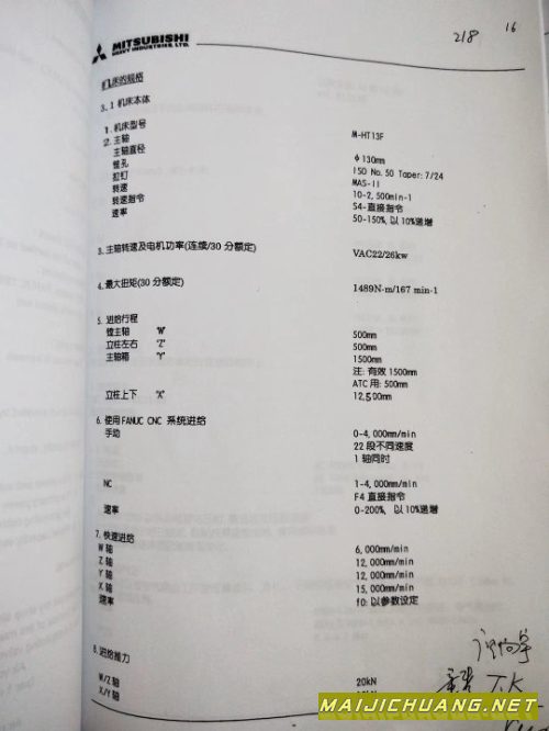 出售2005年产三菱重工数控双面镗,工作台1260X10000,交换台1260X1260,加工高度1250,刀库90把,50刀柄,130主轴,立柱左右移动各500,法拉克18iMB,完好在位。