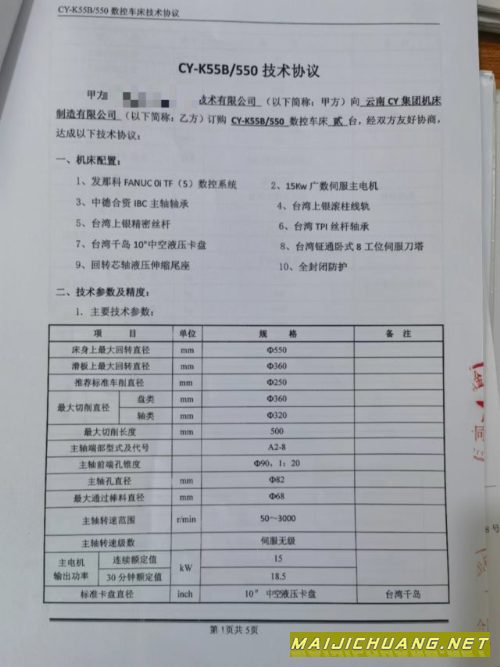 沈阳i5T3.5数控车 参数如下: 型号:i5.