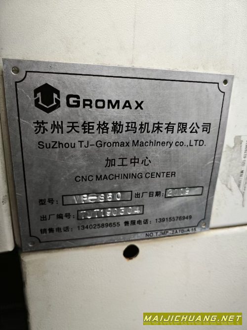 苏州格勒玛850加工中心一台,2019年设.